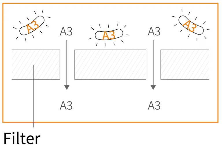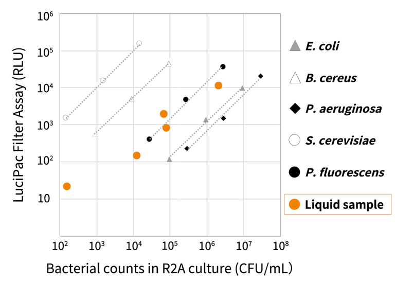 El LuciPac A3 Filter Assay permite detectar microorganismos en muestras líquidas en menos de 5 minutos. Su operación es sencilla, no requiere capacitación especial y tiene una sensibilidad de detección de 10 ~ 10⁸ CFU/mL (dependiendo de la muestra). Basado en la tecnología ATP Test (Kikkoman A3), detecta ATP + ADP + AMP (A3) presentes en los microorganismos retenidos en el filtro, mostrando los resultados en RLU (Relative Light Units).
